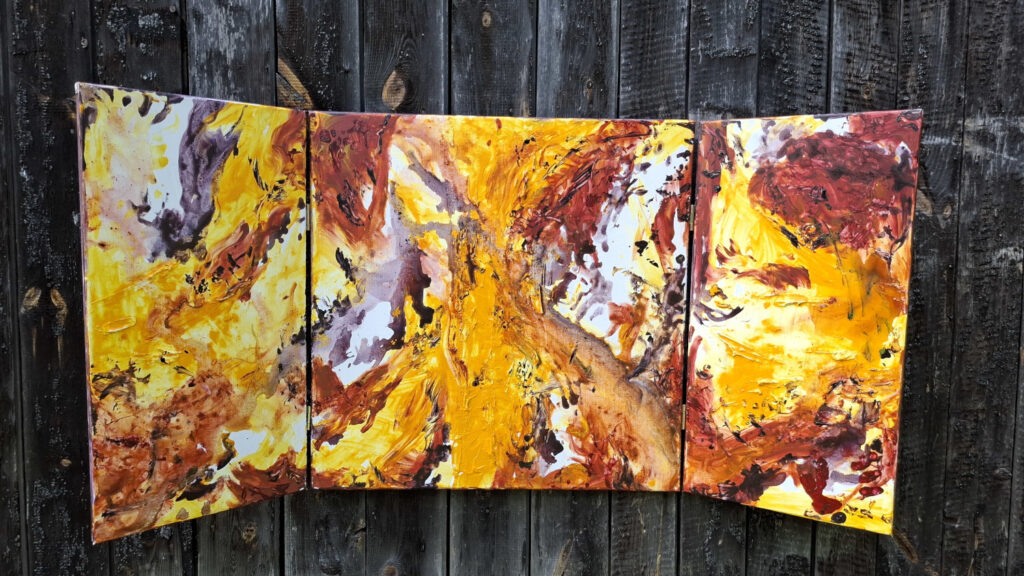 Erntesegen, 2024, 60/73 cm, Acryl auf Leinwand, 1.445 €Rauhnacht, 2023, 57/71 cm, Acryl auf Leinwand, 1.157 €Dreunender Dickicht, 2024, 57/71 cm, Acryl auf Leinwand, 979 €Streiflichter, 2023, 57/71 cm, Acryl auf Leinwand, 979 €Liebe zu Jana, 2024, 60/74 cm, Acryl auf Leinwand, 1.270 €Todesgeflüster, 2024, 60/74 cm, Acryl auf Leinwand, 1.074 €Erfrischung, 2024, 60/73 cm, Acryl auf Leinwand, 1.060 €Geburt, 2024, 44,5/54 cm, Acryl auf Leinwand, 582 €Wogen, 2024, 44,5/66,5 cm, Acryl auf Leinwand, 716 €Sonnenwarm, 2024, 44,5/66 cm, Acryl auf Leinwand, 582 €Blutiges Moos, 2024, 54,5/64 cm, Acryl auf Leinwand, verkauftGemetzel, 2024, 104/104 cm, Acryl auf Leinwand, 2.570 €Auseinandersetzen, 2024, 87/100 cm, Acryl auf Leinwand, 2.067 €Ritt durch die Heide, 2024, 87/100 cm, Acryl auf Leinwand, 3.445 €Hoffnungsschimmer, 2024, 87/100 cm, Acryl auf Leinwand, 2.526 €Schlingpfeifen, 2024, 87/100 cm, Acryl auf Leinwand, 2.526 €Wandlung der Lust, 2024, 57/70 cm, Acryl auf Leinwand, 1.369 €Flimmersonne, 2024, 87/100 cm, Acryl auf Leinwand, 2.105 €Licht übernimmt, 2024, 87/100 cm, Acryl auf Leinwand, 2.105 €Aufjubel, 2023, 87/100 cm, Acryl auf Leinwand, 2.105 €Immer leichtere Tänze, 2024, 3x 100/160 cm, Acryl auf Leinwand, 13.939 €Balance, 2025, 60/60 cm, Acryl auf Leinwand, 1.030 €Leben gewinnt, 2024, 50/50 cm, Acryl auf Leinwand, 715 €Warpsprung, 2024, 50/60 cm, Acryl auf Leinwand, 1.650 €Phönix Deutschland, 2025, 120/59 cm, Acryl auf Leinwand, 2.525 €Gewitter, 2025, 60/60 cm, Öl auf Leinwand, 1.030 €Ahnenruf, 2024, 87/124 cm, Acryl auf Leinwand, 3.111 €Trübnis befrieden, 2025, 70/90 cm, Acryl auf Leinwand, 2.025 €Endgegner, 2025, 90/105 cm, Acryl auf Leinwand, 2.287 €Balance, 2025, 60/60 cm, Acryl auf Leinwand, 1.030 €Weben der Heilung, 2024, 90/145 cm, Acryl auf Leinwand, 3.658 €Berlin ist ein Sumpf, 2025, 90/110 + Skulptur, Acryl auf Leinwand, Tanne, Stahl, Eiche, Glas, 3.646 €Ringen nach Luft, 2024, 54/60 cm, Acryl auf Leinwand, 1.069 €Freies Wuchern, 2024, 40/50 cm, Acryl auf Leinwand, 484 €